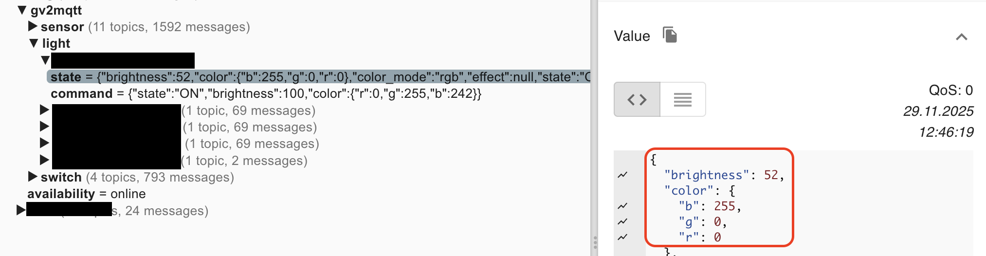 It seems that the MQTT Homeassistant binding doesn’t update a color-item when the “brightness” value in the mqtt topic has changed. I looks like that the binding updates the item only if the RGB values have changed. I’ve just tested it with some Govee lights throught the govee2mqtt binding.