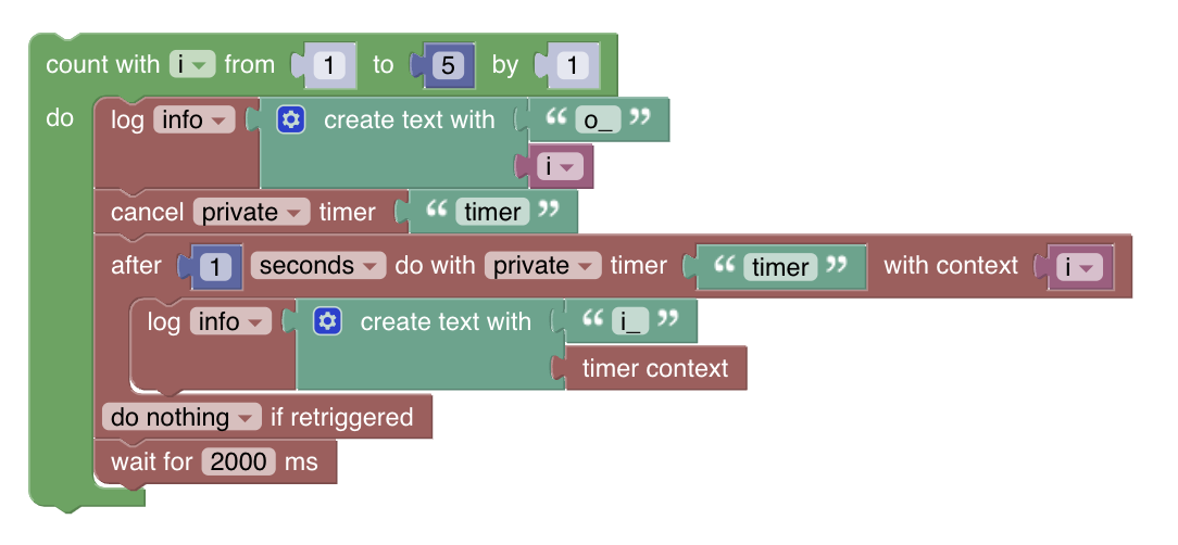 after << i*2 >> seconds do with private timer “timer” with context << i >>