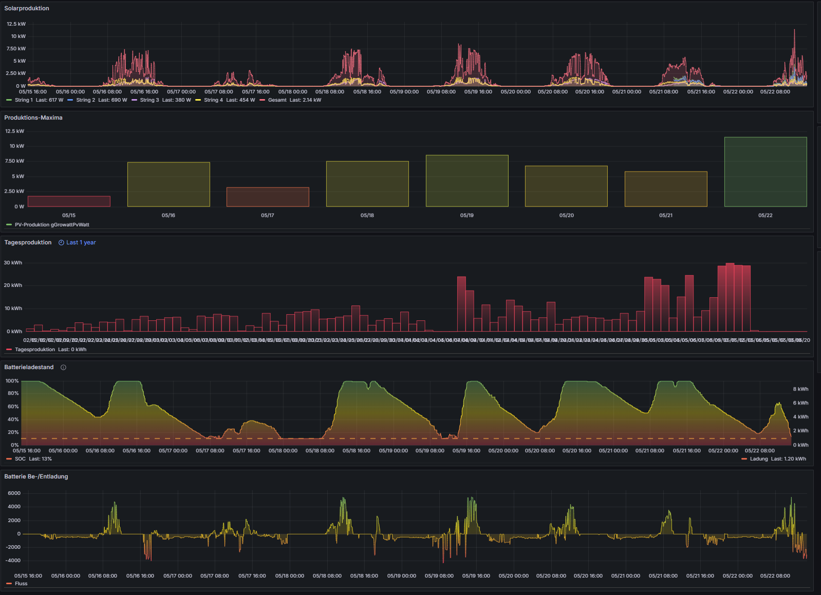 Finding the “correct” registers was quite a job as there are so many different version of the Growatt modbus docu out there (and none is either complete or 100% correct