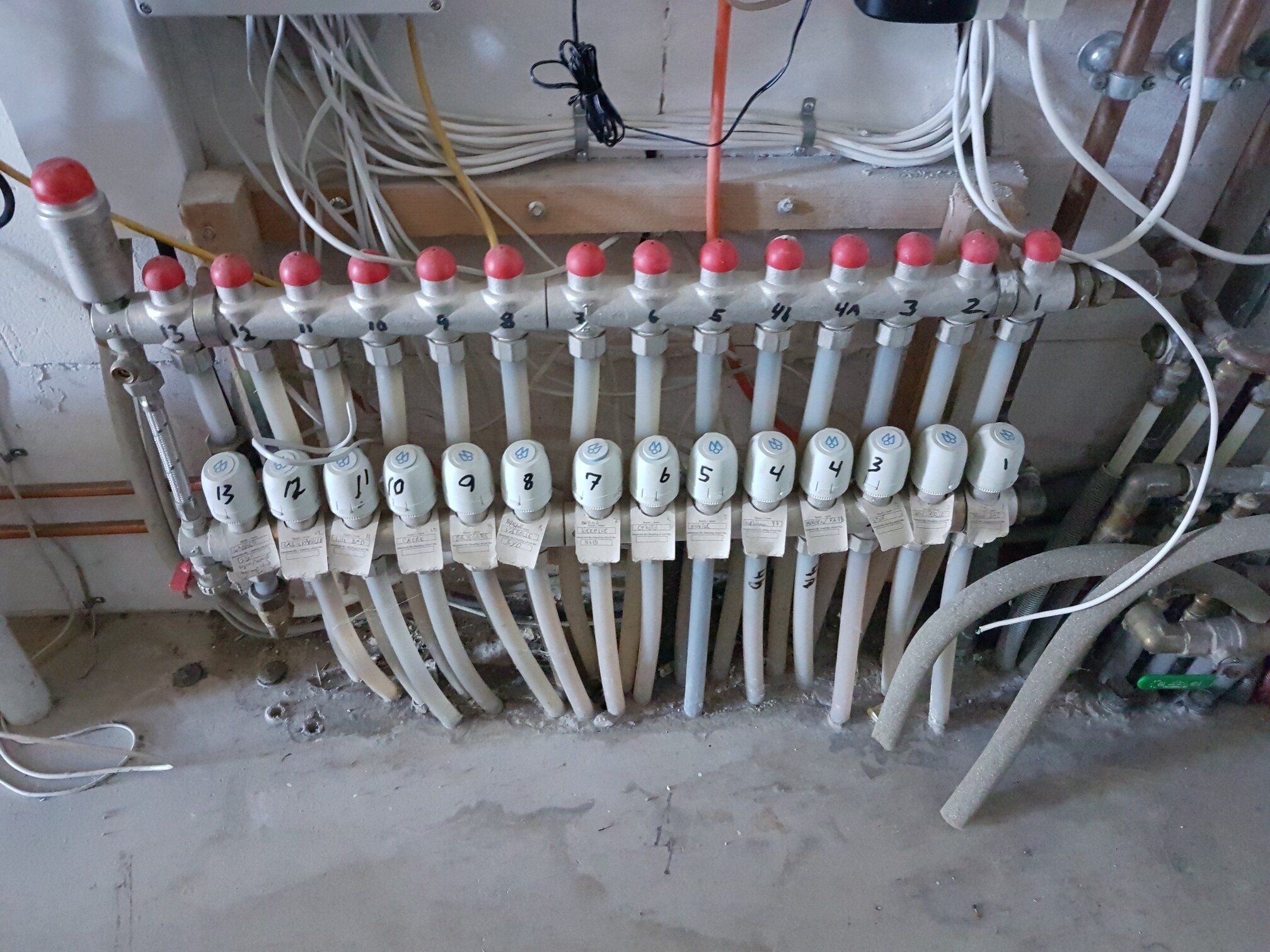 This is a picture of our heating system (manifold) with all the actuators (sorry about the mess, the picture was taken while I rebuild the solution to be using IHC system):