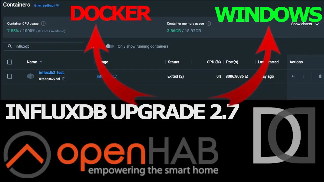 openhab4 on raspberry PI 4 - Upgrade to influxdb 2.7 on windows with docker