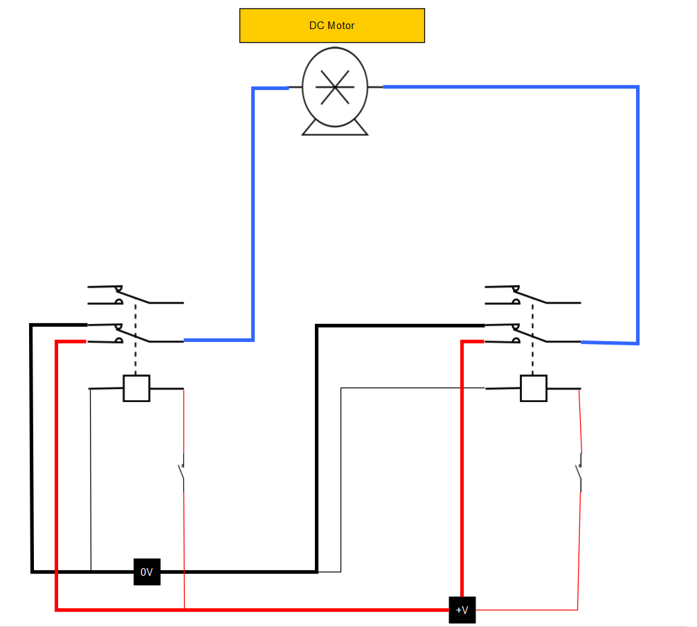 (this diagram uses “Double Pole, Double Throw” relays, because that’s what I have in the image library)