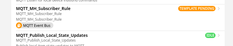 Regarding the MQTT Event Bus … I like the concept and have already tried to use it. Clearly I’m doing something wrong, however, as I never get past “Template Pending”. It’s been pending for days now.