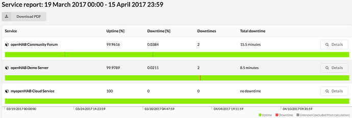 In the forums there is mention of myopenhab is not working as it should, yet the status page says: operational.. Does it mean that all the problems are soved or is their no status for: “server is alive, but service only working intermittently”?