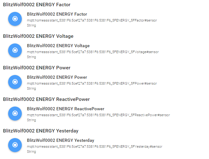 2019-09-12 20:07:33.415 [vent.ItemStateChangedEvent] - mqtt_homeassistant_5381F6_5cef27a7_5381F6_5381F6_5FENERGY_5FReactivePower_sensor changed from {“Time”:“2019-09-12T19:02:32”,“ENERGY”:{“TotalStartTime”:“2019-09-07T19:22:27”,“Total”:0.317,“Yesterday”:0.066,“Today”:0.066,“Period”:0,“Power”:0,“ApparentPower”:0,“ReactivePower”:0,“Factor”:0.00,“Voltage”:0,“Current”:0.000}} to {“Time”:“2019-09-12T19:07:33”,“ENERGY”:{“TotalStartTime”:“2019-09-07T19:22:27”,“Total”:0.317,“Yesterday”:0.066,“Today”:0.066,“Period”:0,“Power”:0,“ApparentPower”:0,“ReactivePower”:0,“Factor”:0.00,“Voltage”:0,“Current”:0.000}}