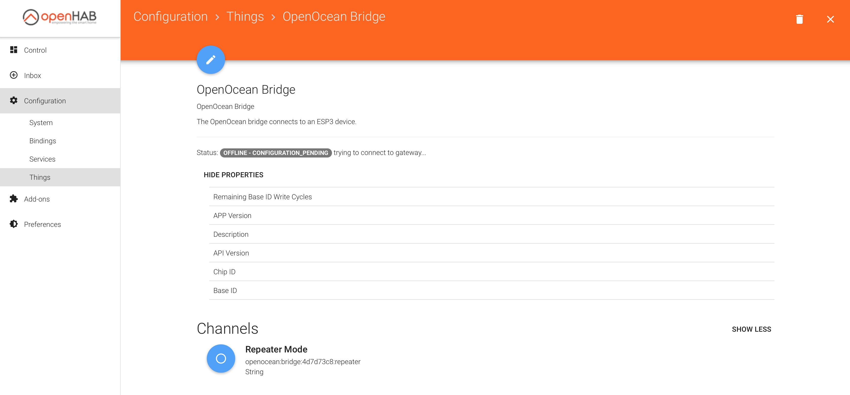 2018-02-22 18:31:21.142 [hingStatusInfoChangedEvent] - 'openocean:bridge:4ce5ad74' changed from INITIALIZING to OFFLINE (CONFIGURATION_PENDING): trying to connect to gateway...