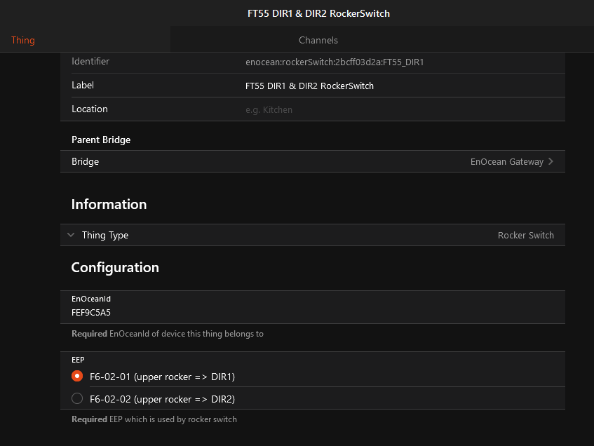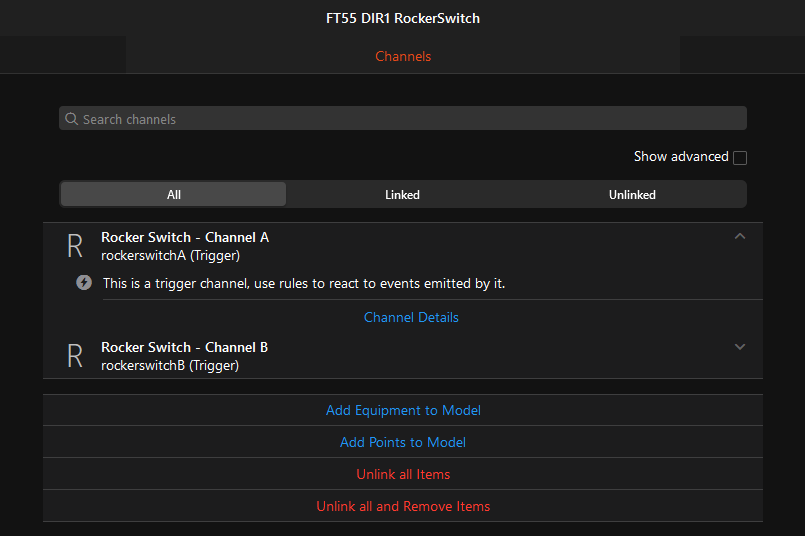 I have a physical RockerSwitch Eltako FT55. In OH2 I was able to add a switch to to Channel A nd B. In OH3 I am not able to do so anymore. It tells me the channel is only for triggers: