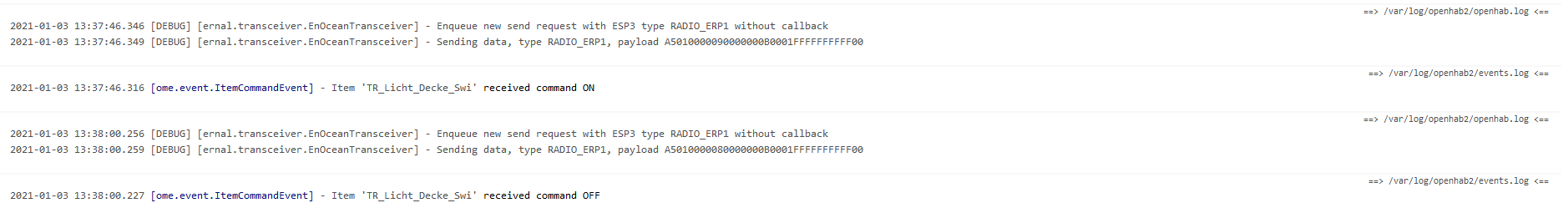 Thing centralCommand TR_Licht_Decke "TR_Deckenleuchte" @ "DG_Treppenhaus" [enoceanId="0000000A",senderIdOffset=10, sendingEEPId="A5_38_08_01" , receivingEEPId="A5_38_08_01","F6_00_00" , broadcastMessages=true, suppressRepeating=false]