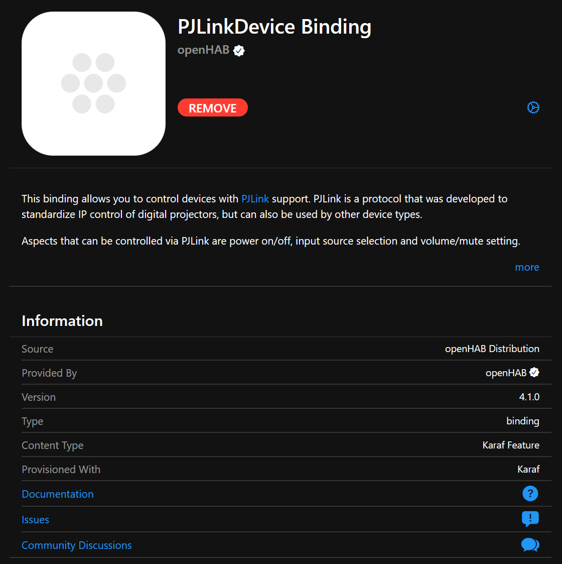 I know this is quite an old thread…but, I’ve just got a Optoma Projector which supports PJLink. I’ve got it connected to the Openhab using the binding fine - thanks for the tips here on auto-discovery not working.