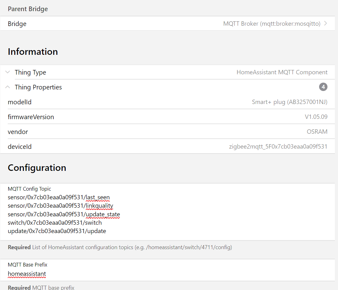 I’m using zigbee2mqtt and all those properties are available, so it’s somehow an issue with OH, as it can’t discover the device properly. As I’m new there, I don’t know all the OH capabilities. Is there a way to add a thing manually, with its all configuration?