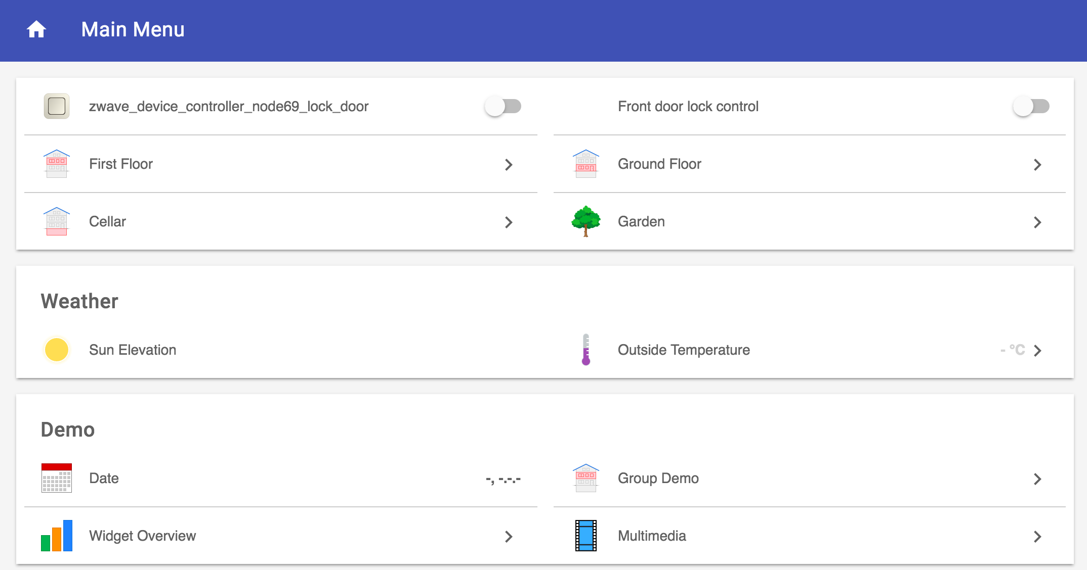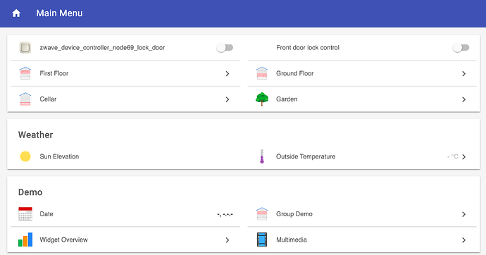 the interface itself is pretty basic. An interface with tiles like Smartthings (one tile for bedroom with an image of the bedroom for example) looks much better. Im sure this can be done somehow but doesnt seem very straightforward so far