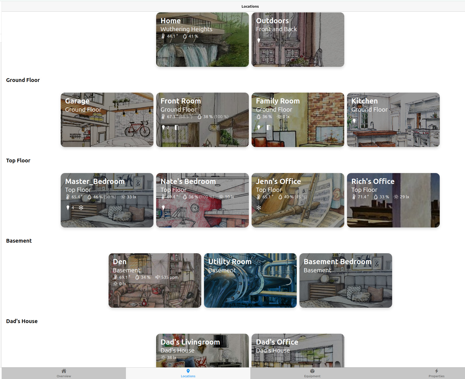 The model controls how the cards on the Locations, Equipment, and Properties are organized. This is the most common reason to use the model and therefore you’ll set up your model based on how you want to have the cards on these pages organized. In my case, it keeps my dads house separate from my house.