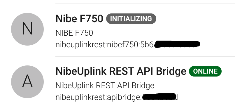 …also now that I tried to disable/enable Nibe things, only API bridge got back online