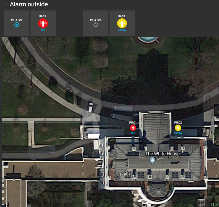 Software - I love dynamic icons and HABPanel. As I plan to have many more motion sensors (probably 20+) I wanted to have all of them nicely visualized. I dreamt of ortophoto of my house and garden where PIR icons are placed exactly where PIR sensors are physically placed.