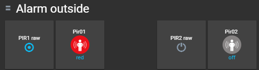I would also like to change the icon content (so not only the color) to visualize the direction of the move, if known. I have already an idea but haven’t created a rule for that yet, so this is something to be done later. Generally this shouldn’t be hard as if you have e.g. 2 PIR sensors not far away from each other (typically two on each side of the house) then you can easilly get the direction depending which sensor was triggered first and which one the second. Then you can change the icon (keeping the color set by timeout from the trigger).