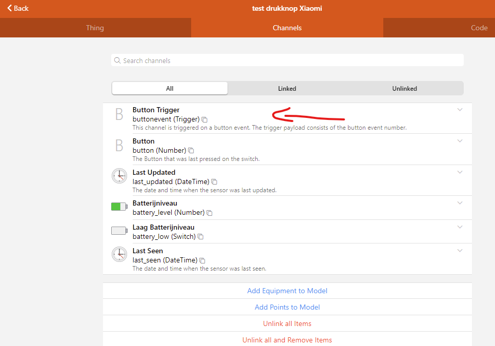 I’m confident that the thing is correctly configured because I get this in the Openhab logging when pushing the button