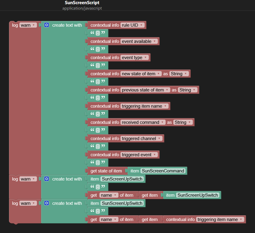console.warn(([ctx.ruleUID,':',true,':',event.eventName,':',(event.receivedState ?? event.newState),':',event.oldState,':',event.itemName,':',event.receivedCommand,':',event.channelUID,':',event.receivedEvent,':',items.getItem('SunScreenCommand').state].join('')));