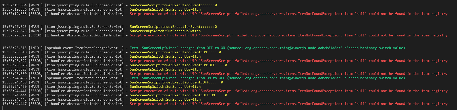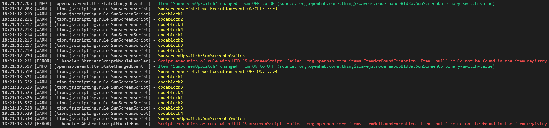 15:58:23.526 [WARN ] [tion.jsscripting.rule.SunScreenScript] - SunScreenScript:true:ExecutionEvent:ON:OFF:::::0