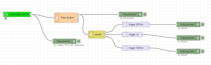 So the && (AND Condition) in the IF statements didn’t work for me, but with a switch node after the IF Function, I can see the three different states from the Velbus buttons.