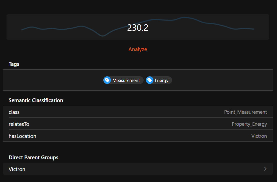 The Item you are looking at is GridVoltage, it’s a Number type, it has state “230.2” - so far so good.