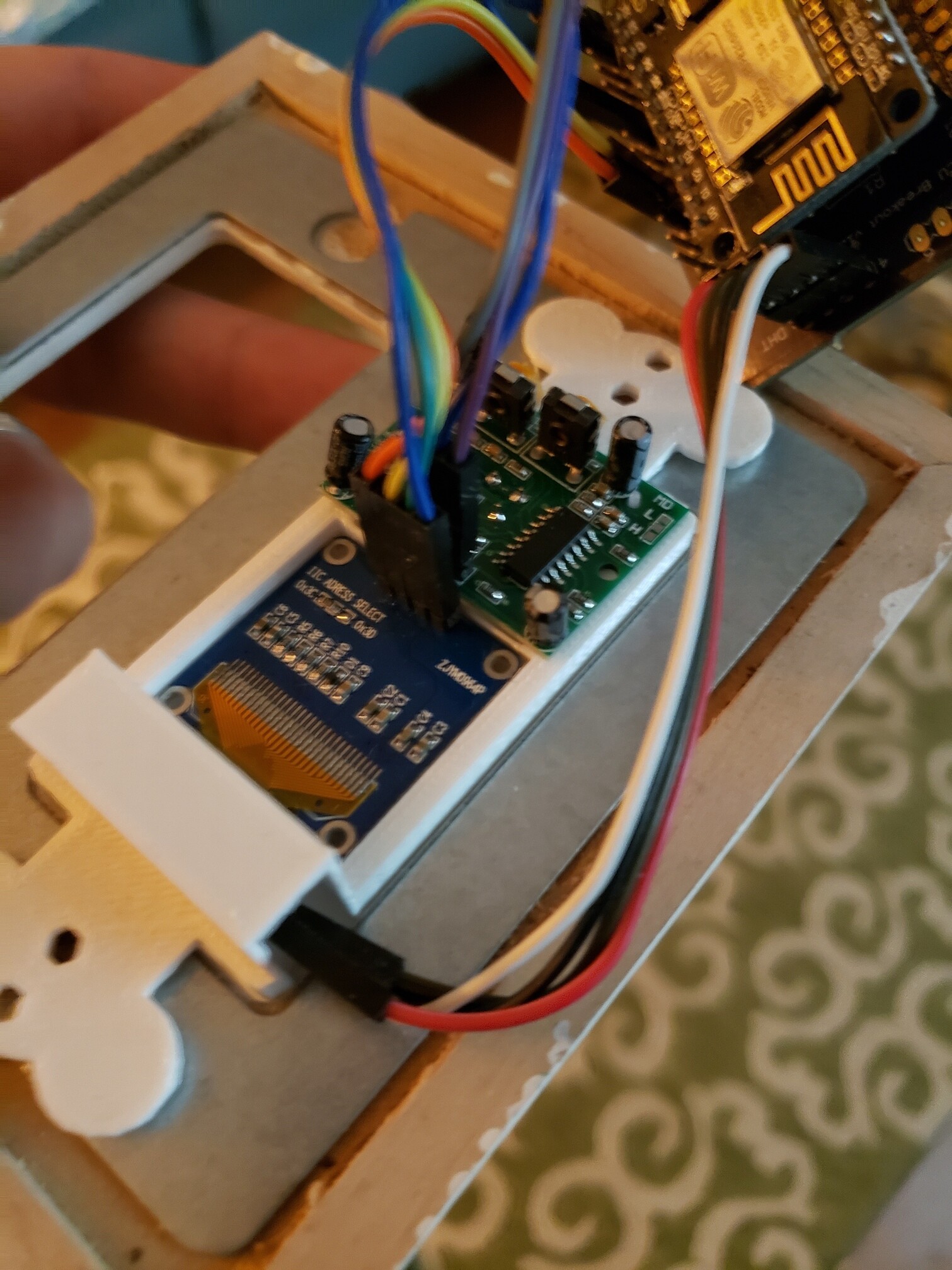 One additional comment - the HC-SR501 is a fine PIR sensor, but I hope you have better luck than I did with false positives. I even wired it directly for 3.3v use (bypassing the 5V vreg), and while that helped (likely because the VIN line on the NodeMCU doesn’t provide a steady 5V), the PIR is still very sensitive to RF/EMI, and the Wifi signal from the NodeMCU sometimes triggers it falsely. This is why I’ve switched to the TE AmbiMate MS4 (pictured in my previous post above) - a much more professional sensor, with filtering built into the MCU on the board, and additional sensors as an all-in-one (temp/humidity/motion/audio level/light level/CO2/VOCs). If you got rid of the DHT22 and shifted your OLED up, you might even be able to fit it in within the space below the OLED.