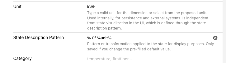 Adding a State Description to the Item (Model) with “%.1f” will show me 300.6 but will hide the Unit at the same time.