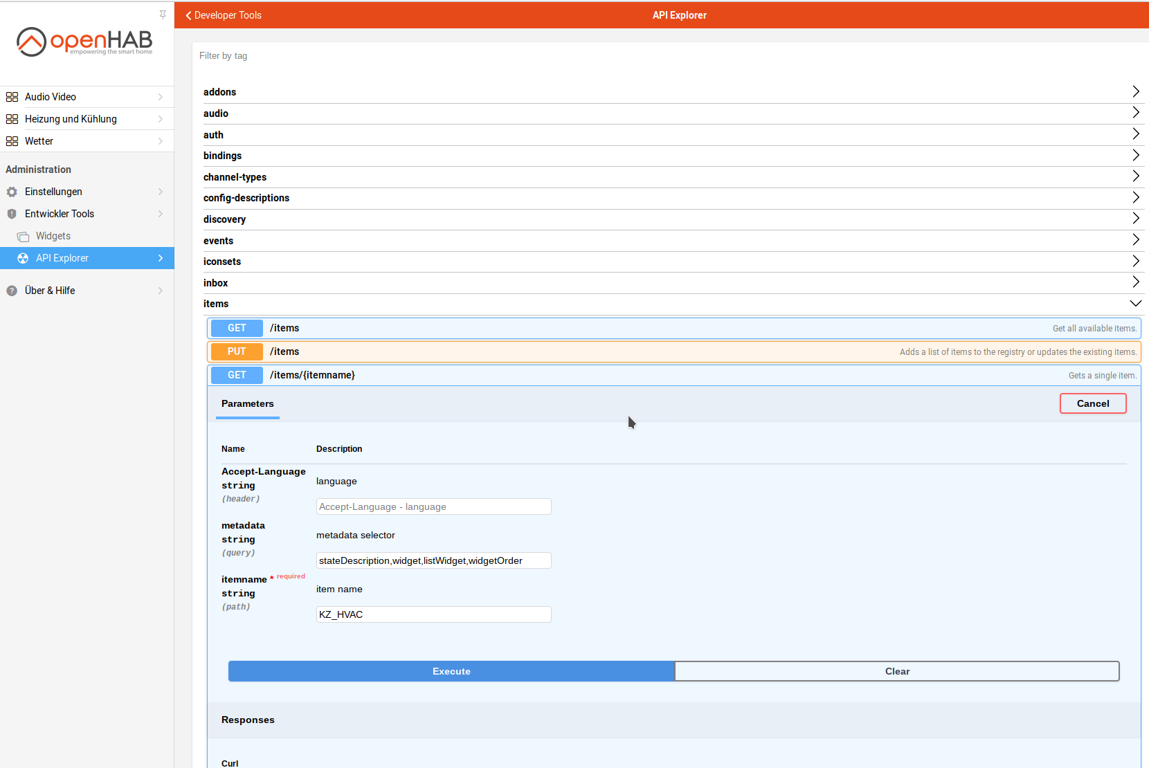 - Open the API Explorer from the Developer Tools