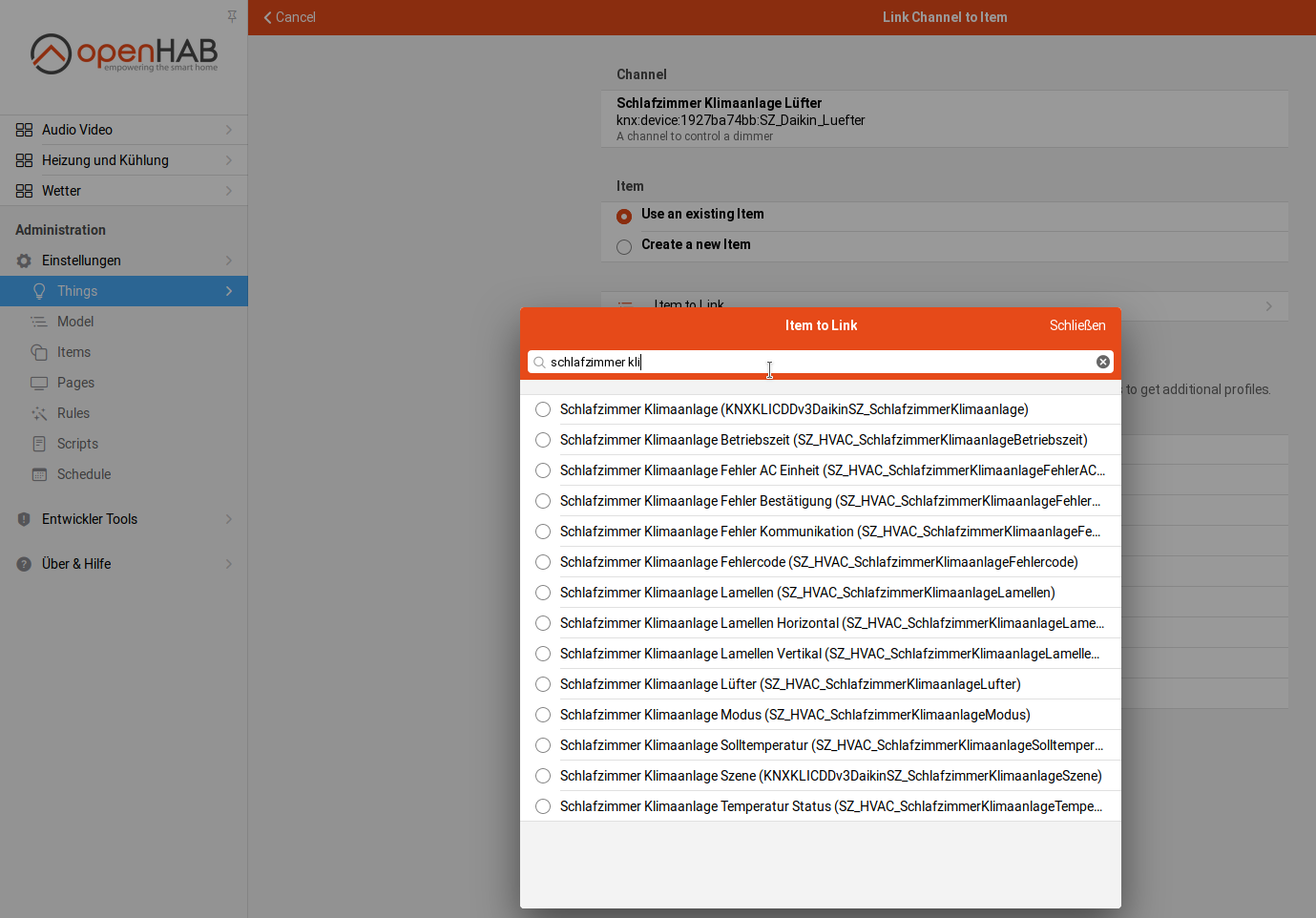 - from the Model choose “Create Equipment from Thing” and recreate all my Items that way