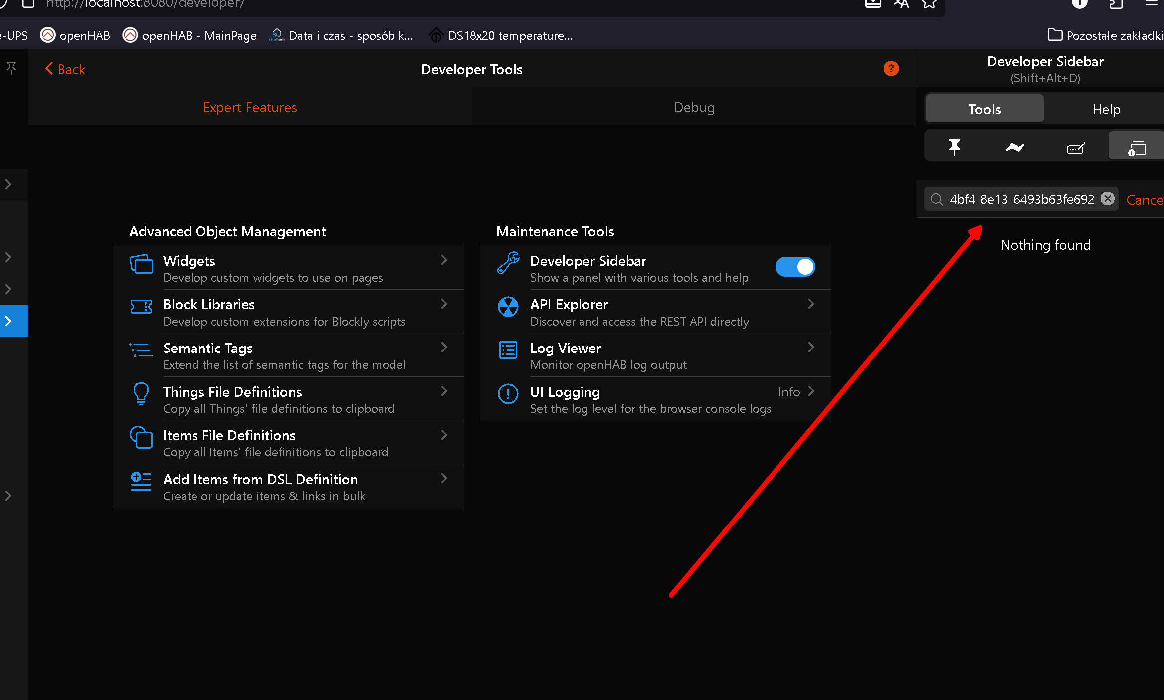 but through the developer bar search window is nothing to find when I put the identifier eg. this: