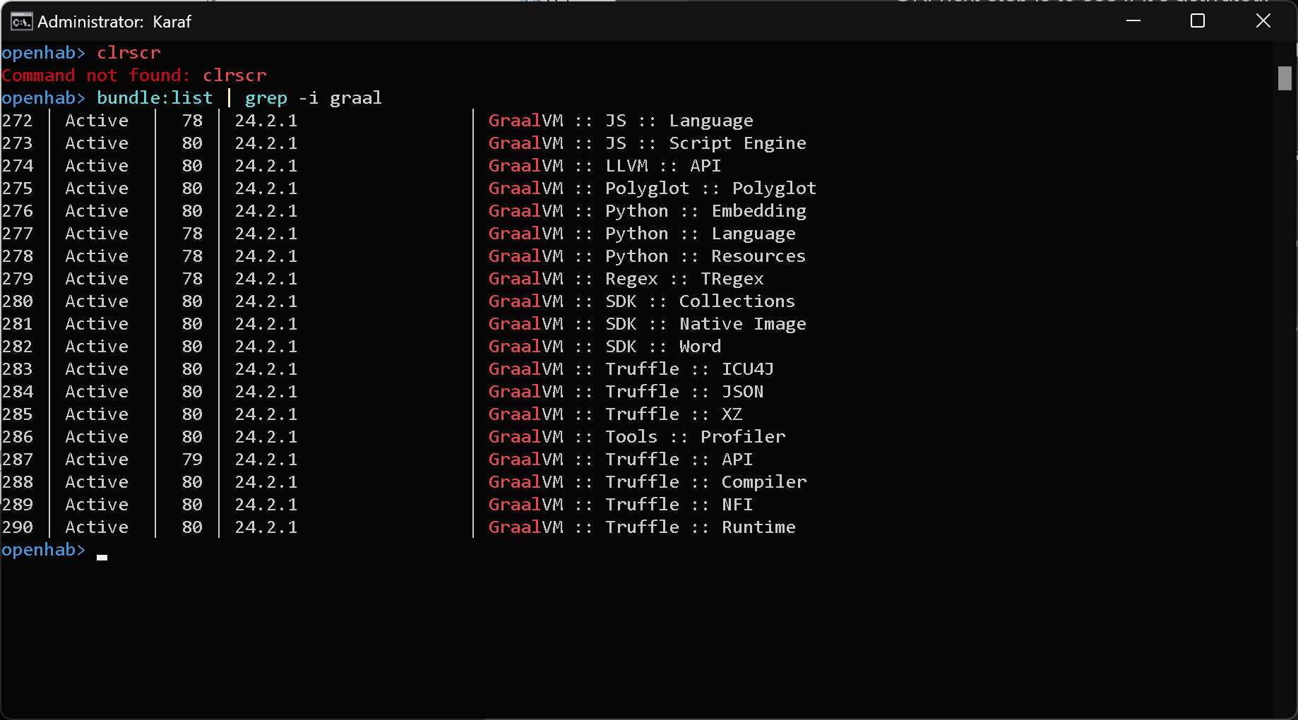 Both of these require GraalVM. So I would guess that the GraalVM bundle didn’t get installed, was not installed properly, or is otherwise having some sort of problem.