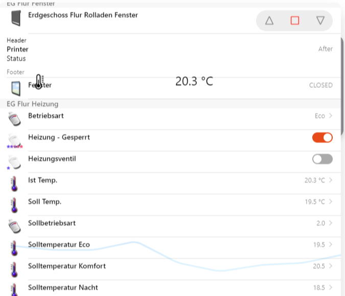 What I would like to do is create an list item widget containing a label card with trendline, value as well as another row to set the heating mode etc.