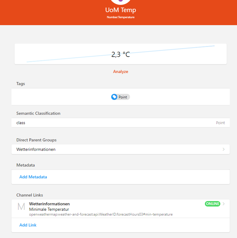 Now I have added the Item to the semantic model making it a Number:Temperature Item with the semantic property Measurement->Temperature.