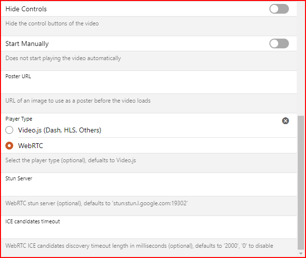 I have also tried another player type (WebRTC), but it doesn’t really make a difference