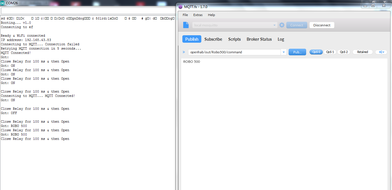 But I cannot see any action in Arduino when I clicked the button in OH2. What’s wrong?