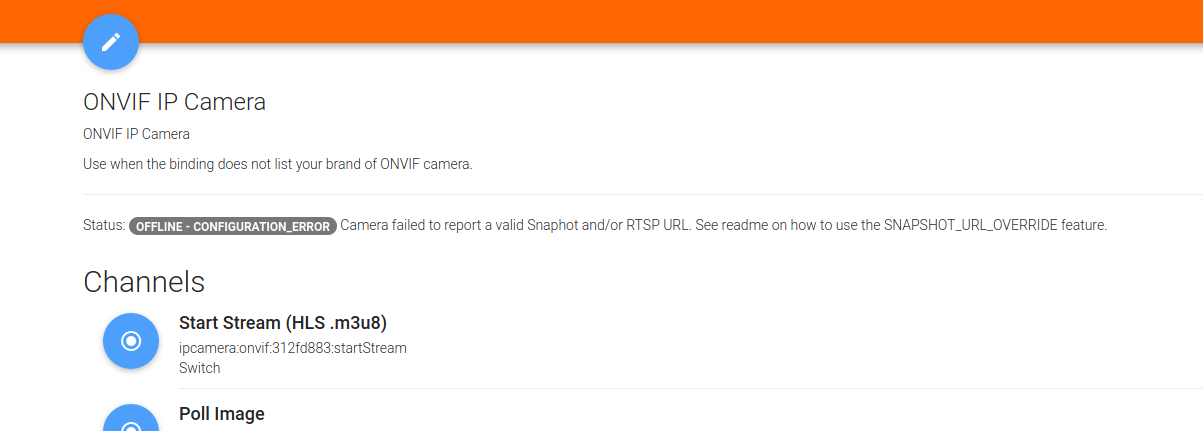Currently I’m trying to set up camera to have live view in Basic UI. I have installed camera binding. Since documentation seems quite difficult at first to set up camera via file driven development, I’ve decided to set up camera via Paper UI. Well, Reolink camera wasn’t autodetected so I’ve typed IP, port and credentials manually. This is what came up.