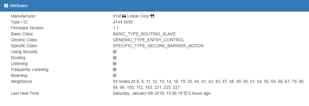 Here is my detached garage door opener, which is the furthest device from the controller (definitely out of range). It works great through the mesh.