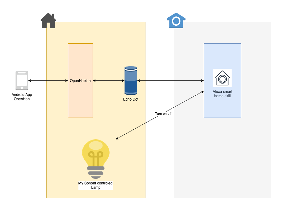 My idea is to create a visual representation of this automation using OH3, where any command sent to OH3 would go straight to Alexa, and then, Alexa would interact with the devices themselves.