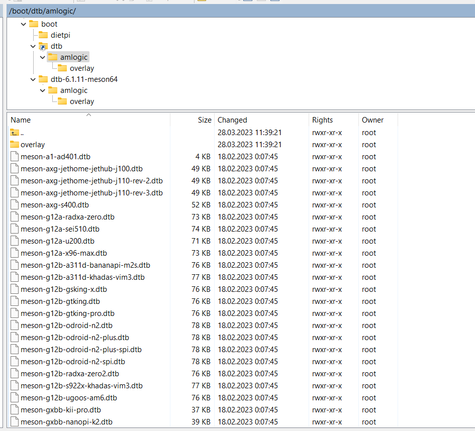 content of the “dtb” and “dtb-6.1.11-meson64” is the same