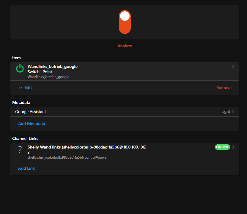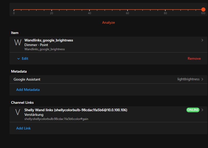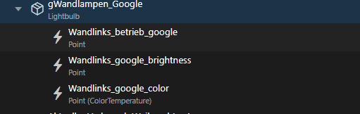 I have also an internal group “all_lights” which is not exposed to google. To realize this i created two items for the shelly bulb.