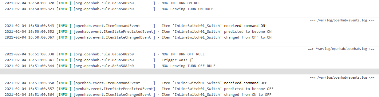 2021-02-04 16:50:00.367 [INFO ] [openhab.event.ItemStateChangedEvent ] - Item 'InLineSwitch01_Switch' changed from OFF to ON