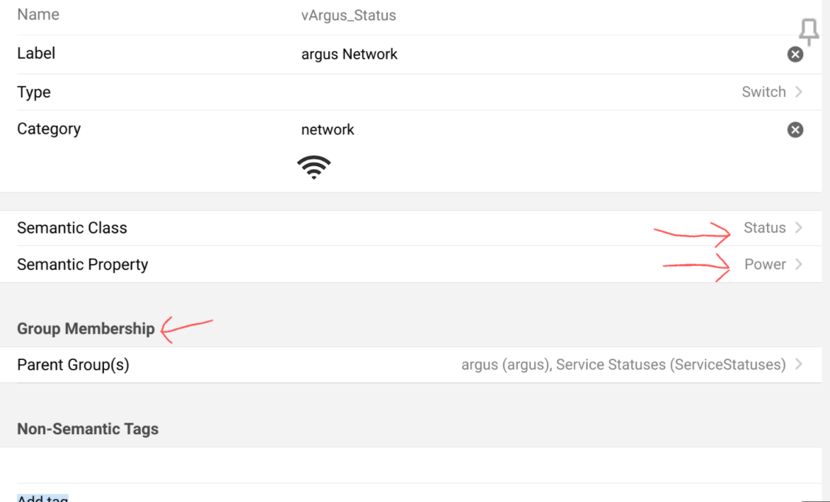 Equipment is usually represented as a Group. It’s location is set through which Location Group it is a member of. All the sensors and actuators that make up the Equipment are represented by Items that belong to it’s Group. You define whether a Group or Item is Equipment or a Point through Item tags. MainUI makes doing this relatively straight forward by presenting the semantic tags as separate options and have a drop down list of the allowable tags.