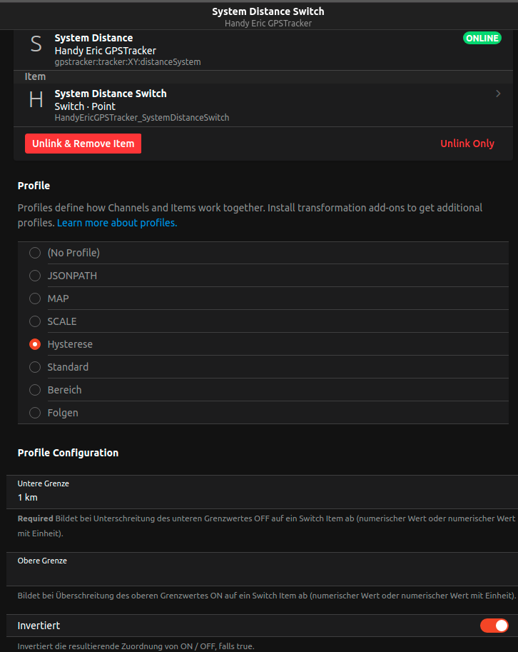 I added the GPSTracker with the GPSLogger app to my system and trying to add a Presence Switch with using the Channel Profiles to the System.