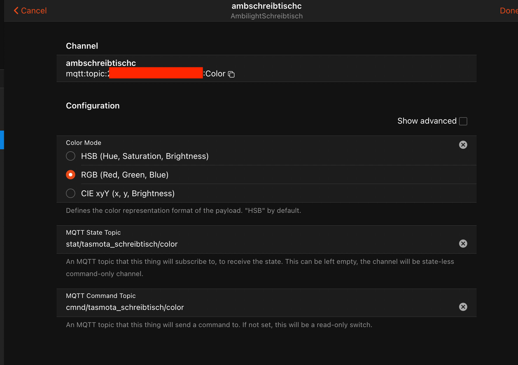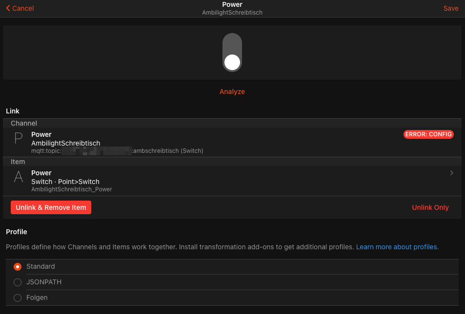 2022-05-29 11:18:40.288 [WARN ] [rnal.handler.GenericMQTTThingHandler] - Channel configuration error