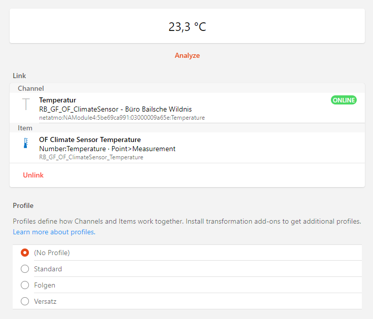 Therefore linking the kitchen lights channel to the living room lights item with the ‘Follow’ profile saves you from writing this rule: