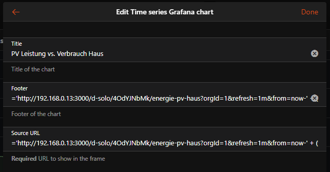 then configure your widget with http://192.168.0.13:3000/d-solo/4OdYJNbMk/energie-pv-haus?orgId=1&refresh=1m&from=now-{period}&to=now&panelId=2