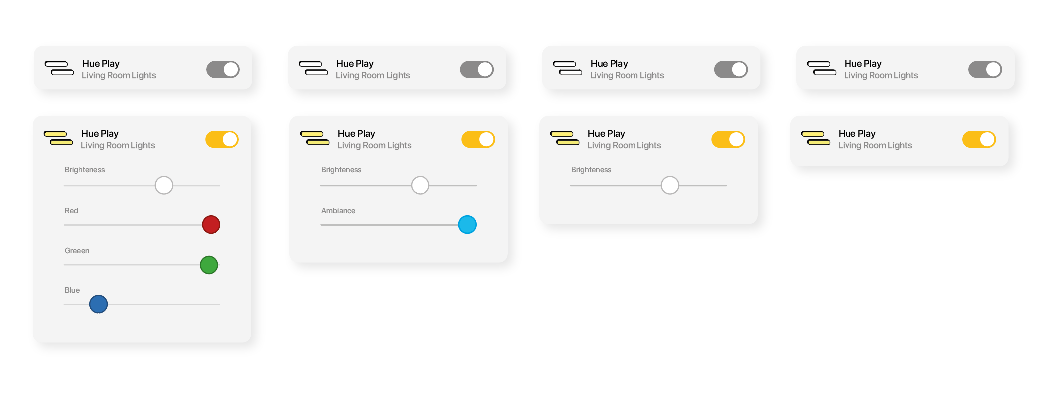 To minimize the information showed, when the equipment is off, cell is minimized and presents only the on-off button (and some badges in some cases). When you power on the light, shows all the available controls.