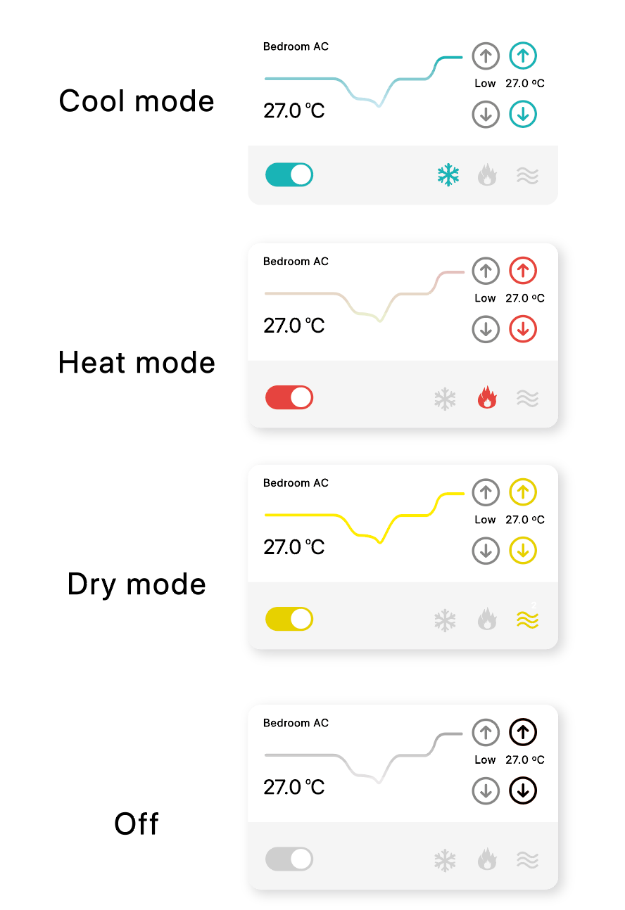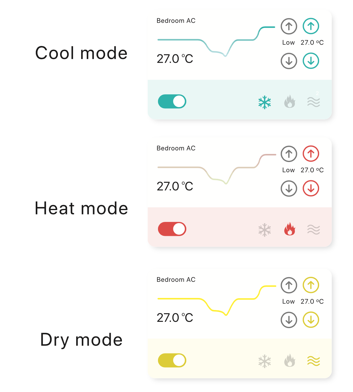 In this version (i think its better..) only the icons changes color depending on selected mode (cool, heat, dry)