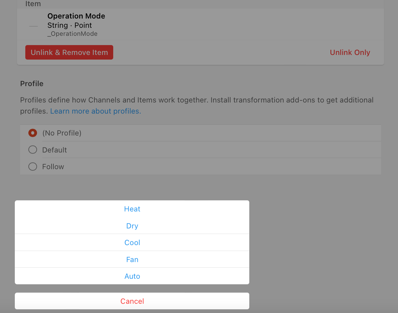 Set mode buttons preferred to be aligned right and selectable- displays Active mode. MODE Icon changes color when selected and the inactive goes grey. (Channel Operation Mode)