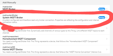 I know that the system broker connection is set up on the main settings screen - that is the gripe I had with the entire concept: if it’s there on that level, I’d expect that bit to work just like a non-system broker thing. @denominator : did you do anything special to get it to work? Are you using TLS? Because that connection is what is causing the problems I’m seeing (I’m not using TLS though, and a non-standard port…)