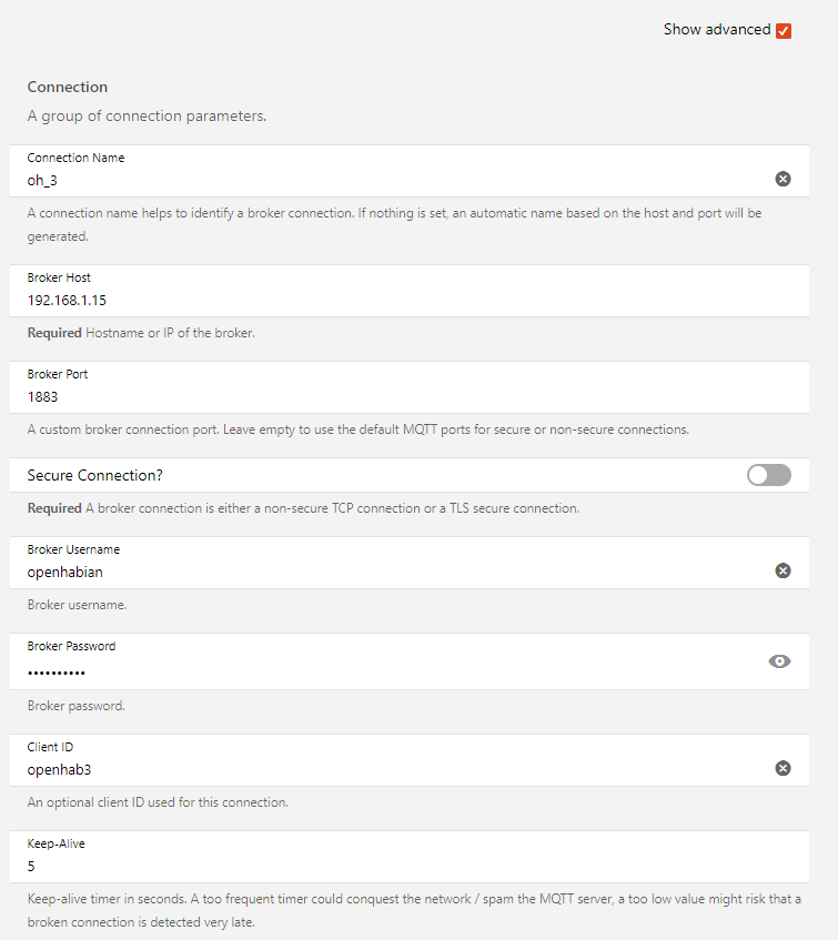 I am at my wits end with this at the moment, tried clean installs of both currently available OH3 builds, changed mosquitto port mappings around to make sure there’s no glitch there, of course I used the identical settings as in OH2 where this works fine.